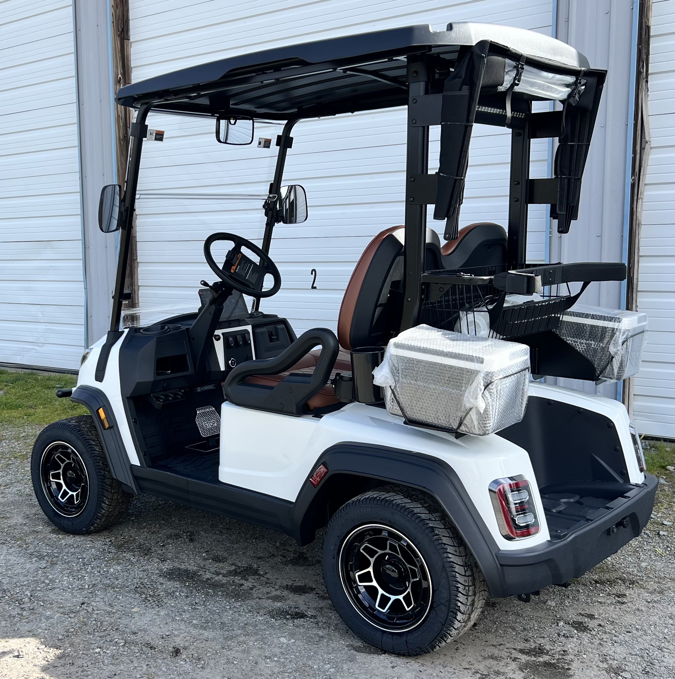 Black with Color Matched Body Stitching, Brown Seats on Forest and White, 2-Point Restraints (x2), Foam Molded Armrests
