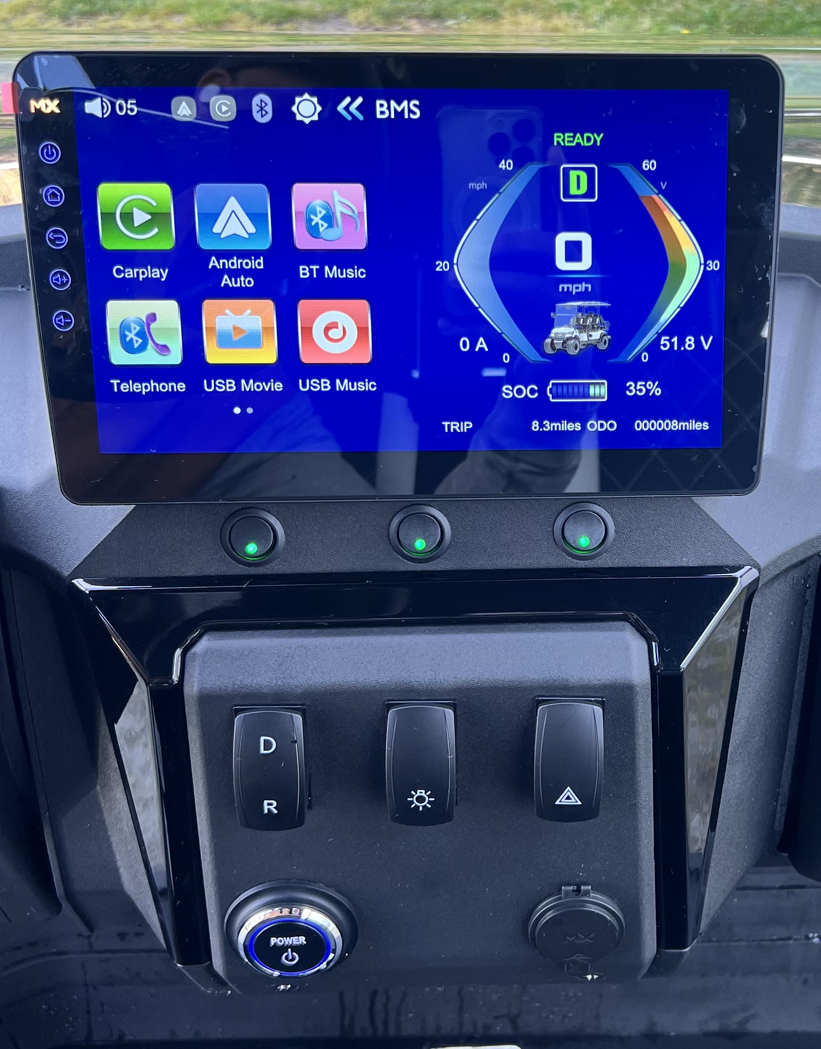 - 10.1" Digital Multimedia Touchscreen, Integrated Back-up Camera, Built-in SoundExtreme Soundbar, Bluetooth Connectivity for Phone, Music, Radio, Forward/Neutral/Reverse Switch for Easy Control, Locking Glove Compartments, USB Ports and Pre-Wired 12V Switches, Cup Holders, Tilt Steering, Tee & Ball Holders, Secure Key Switch, Foldable DOT Certified Windshield